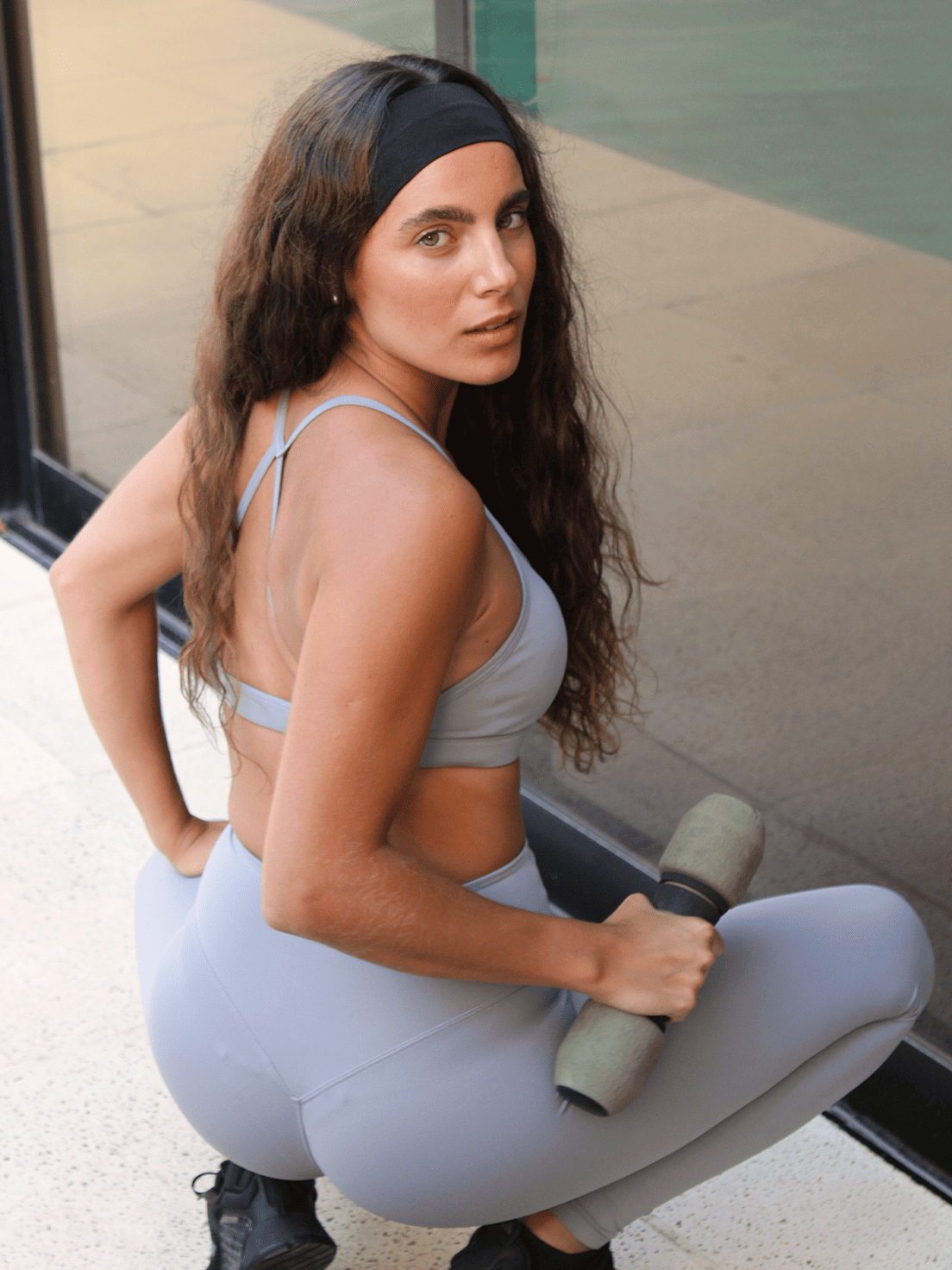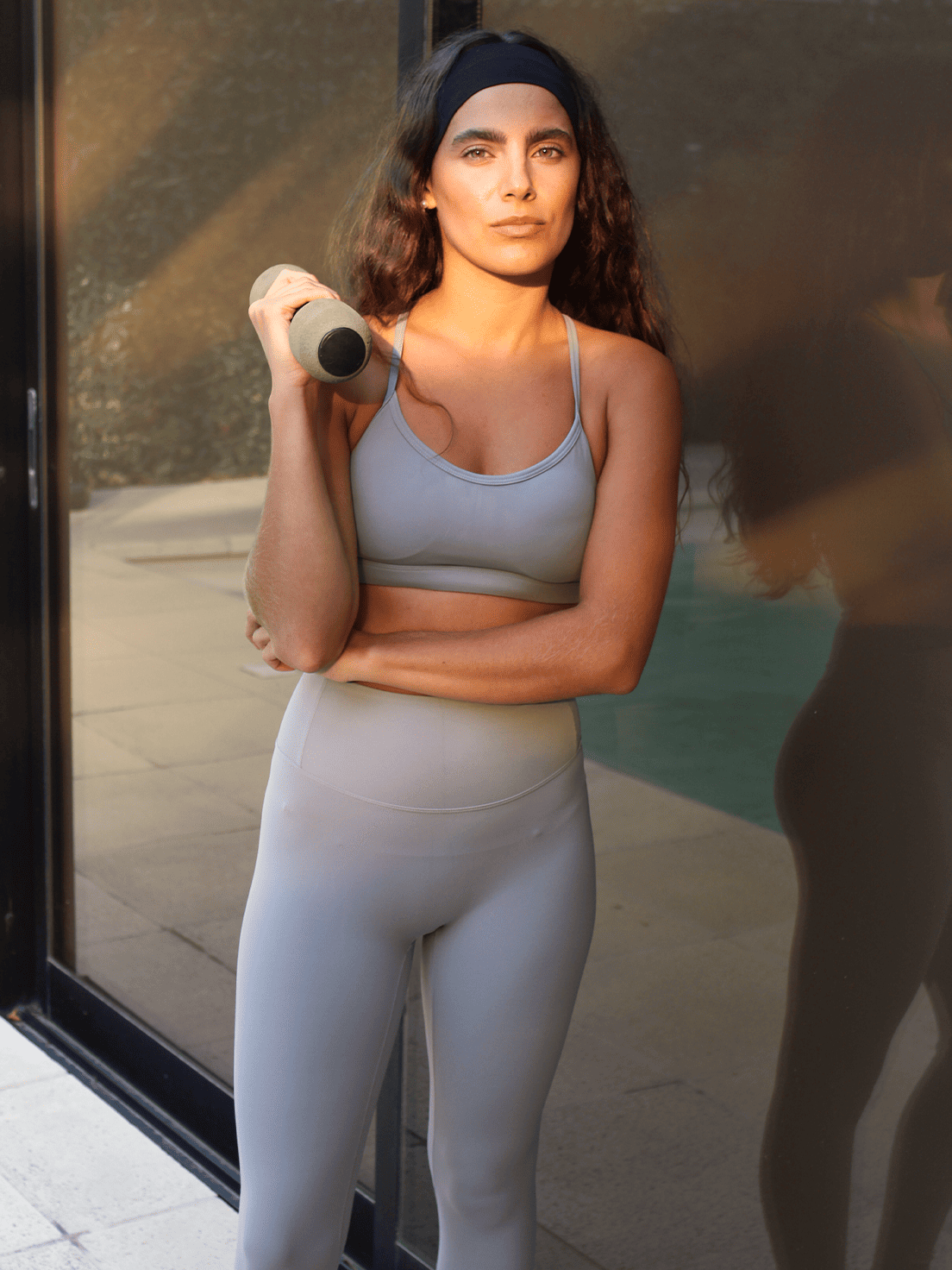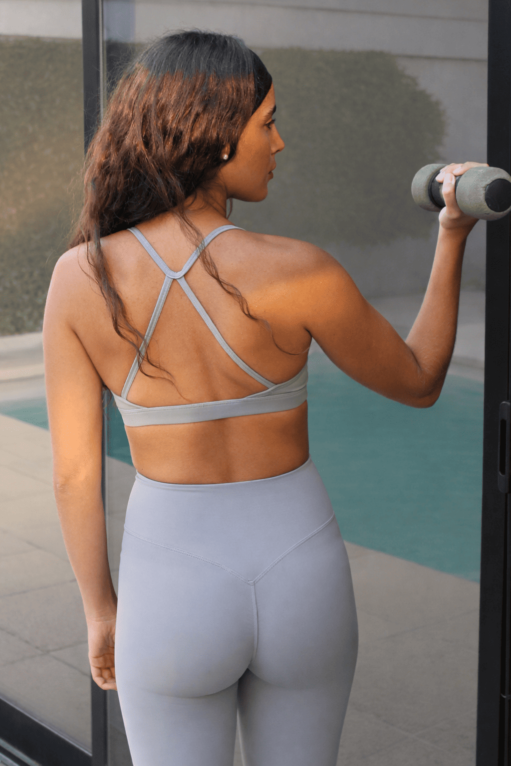 Top deportivo de escote redondo con breteles finos que se cruzan en la espalda.